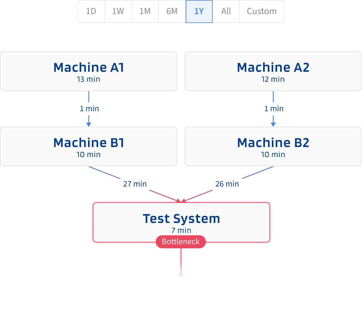 Increasing the rate at which parts flow through a factory is a key objective in manufacturing. Better material flow can be achieved by eliminating three key obstacles: bottlenecks, process variation, and non-value-adding activities. Identifying and eliminating these obstacles is a key task for manufacturers. However, in practice, the dynamic nature of manufacturing processes often makes this task challenging. Conventional problem-solving methods frequently fall short in capturing the subtleties necessary to detect inefficiencies in material flows.