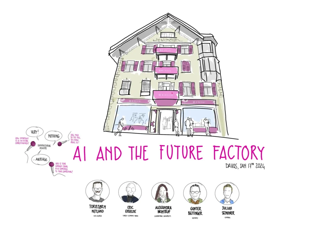 Day 1 - Hype vs. RealityOn the first day, all participants traveled to the AI House in Davos to attend a panel discussion moderated by Prof. Torbjørn Netland from ETH Zurich. The panelists Dr. Gunter Beitinger from Siemens, Prof. Alexandra Brintrup from the University of Cambridge, Eric Enselme of the World Economic Forum, and Dr. Julian Senoner from EthonAI shared their perspectives on the most promising AI use cases and the hype versus reality of AI in manufacturing.