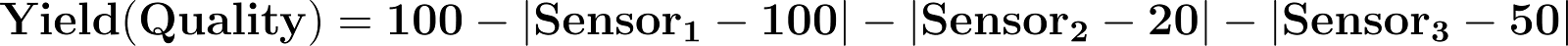 We introduce a practical case for our root cause analysis by simulating data for five sensor measurements and a quality metric defined as yield. Our simulation aims to uncover root causes of yield losses using data from these sensor measurements across 10,000 production batches. The relationship between the sensor measurements and the yield is captured by the following formula: