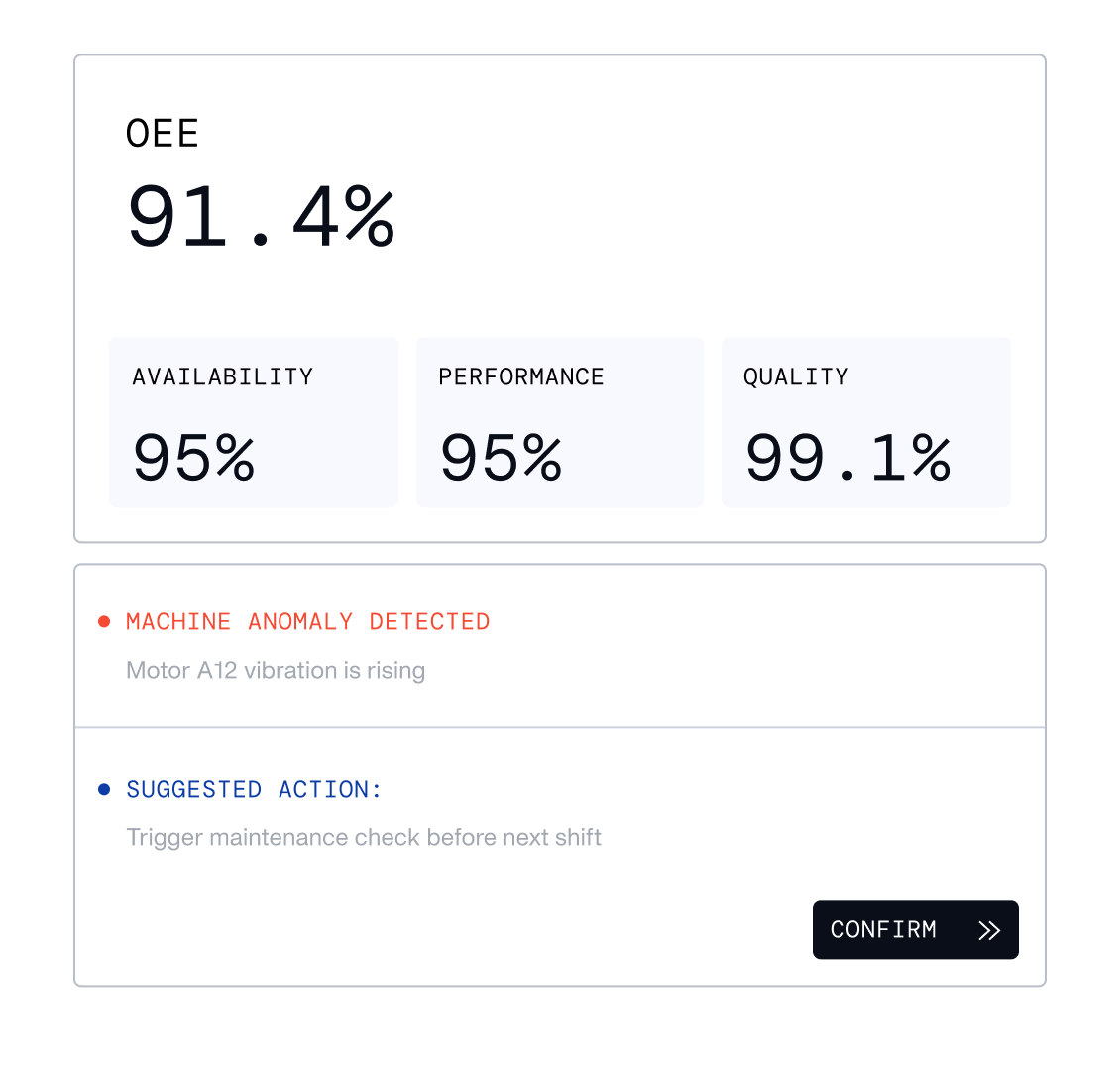 Surface the right action at the right moment so issues are corrected before they turn into lost output or downtime.