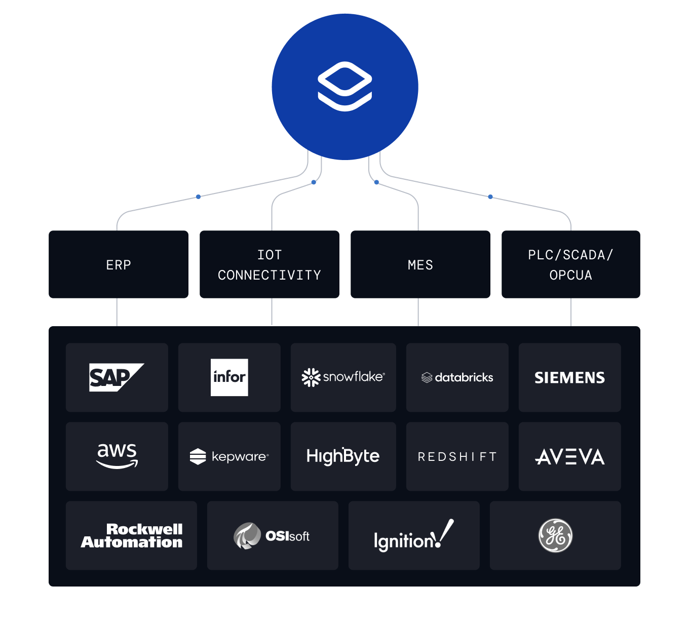 Universal compatibility with all common data sources in factories such as Historians, MES, IoT platforms, and UNS across your IT/OT stack.